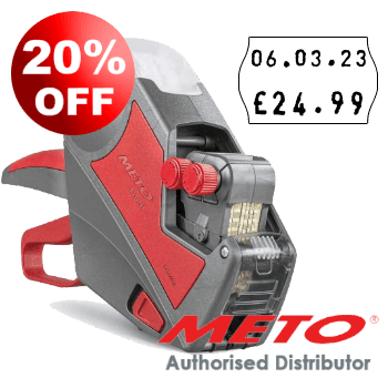 We hold an extensive range of Meto Expert pricing guns, ink rollers & labels in stock available for next day delivery. Bulk or custom label orders are manufactured to order by Meto and available on a 3-6 week turn around.