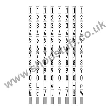 Sample print: £9999.99, £999.99p, 99999999, 31/12/35
